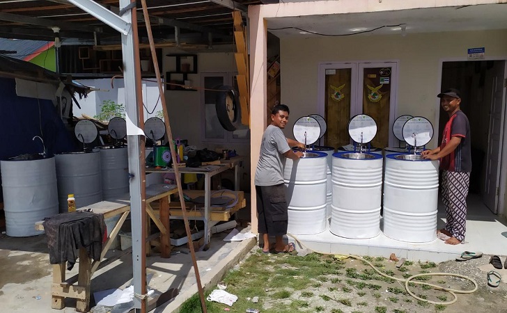 Warga Sulap Drum Bekas Jadi Sarana Cuci Tangan Umum