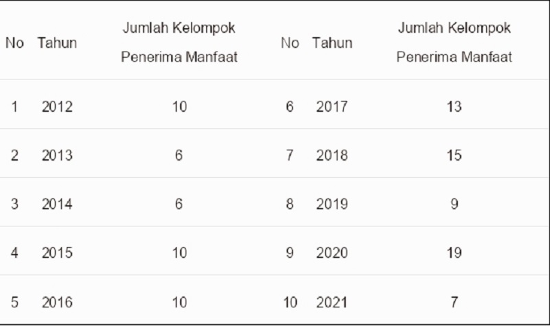 Lebih detail sejak 2012 sampai 2021 kegiatan P2L telah distimuluskan ke beberapa kelompok Wanita Tani dengan penyebaran stimulus sebagai berikut: