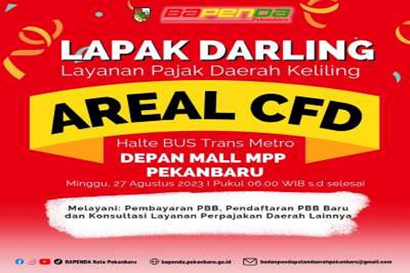 Sebelumnya, Badan Pendapatan Daerah Kota Pekanbaru giat melakukan jemut bola layanan pembayaran PBB yang dilabeli ' Lapak Darling' yang dibuka di area Car Free Day (CFD), Minggu,(27/8/2023) jelang berakhirnya masa jatuh tempo saat masih ditetapkan pada akhir Bulan Agustus 2023.