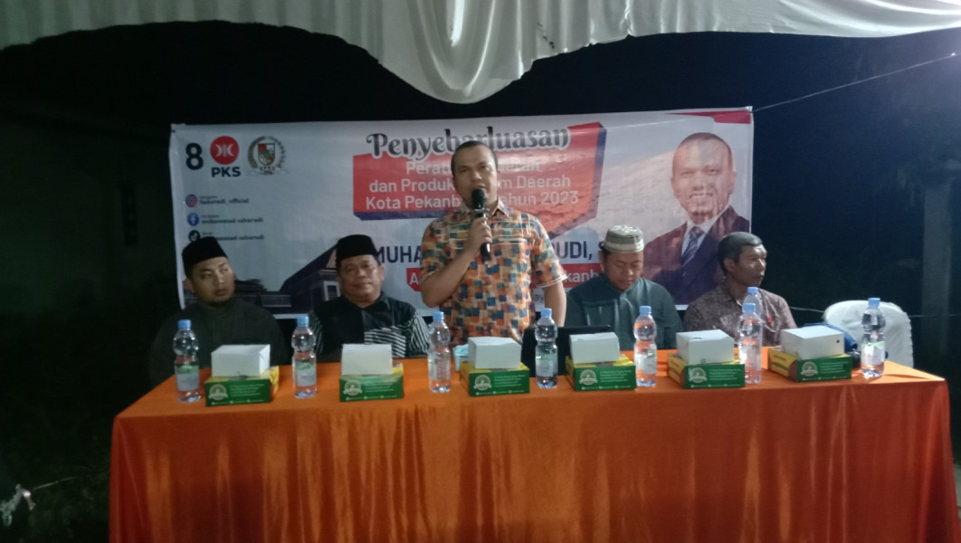 PEKANBARU - Ketua DPRD Kota Pekanbaru Muhammad Sabarudi melaksanakan kegiatan penyebarluasan perda di daerah pemilihannya. Kegiatan ini dilaksanakan pada Jumat (17/11/2023) di Jalan Karya Bakti gg Nagari Batuah RT 3 RW 12, Bambu Kuning, Tenayan Raya pada pukul 20.00 wib.