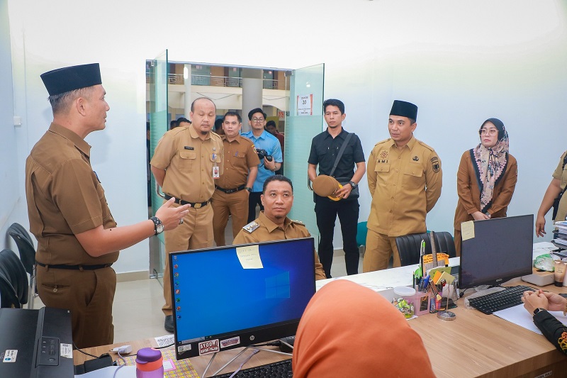 Usai memimpin apel, Wawako Pekanbaru, Markarius Anwar didampingi Sekdako dan Kepala Bapenda Alek Kurniawan meninjau pelayanan di gedung Bapenda.