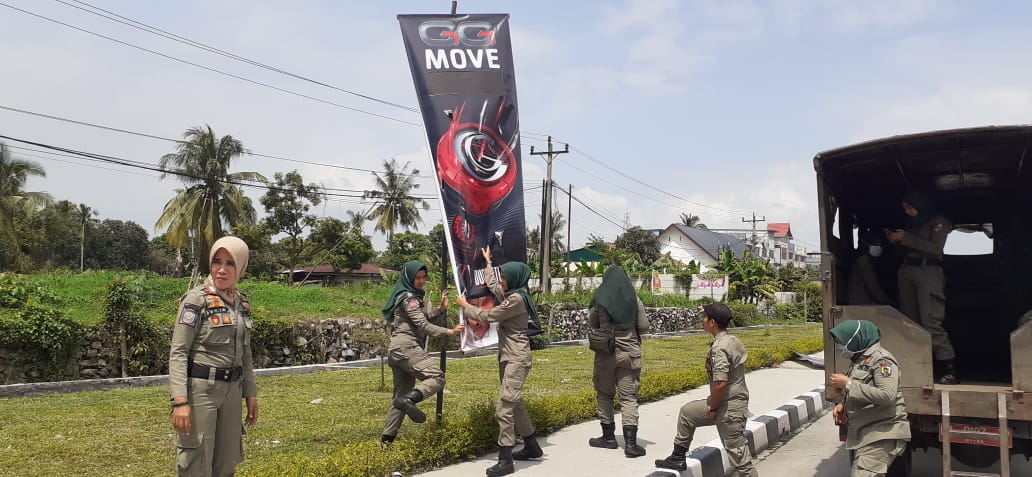 Di Jalan Jendral Sudirman menuju arah Bandara SSK II, personel Satpol PP mencopot sebanyak 96 pcs bendera salahsatu Ormas di Pekanbaru, ditambah dengan mencopot bendera salahsatu asosiasi yang berjumlah 4 pcs. Beralih ke lokasi lain tepatnya di JPO samping gelanggang remaja, personel juga mencopot 1 baliho.