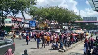 PEKANBARU- Ratusan pedagang di Sukaramai Trade Center (STC) kembali menggelar demo mendesak penge.