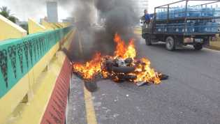 PEKANBARU- Satu unit sepeda motor jenis Honda PCX terbakar di atas flyover Jalan Jendral Sudirman.