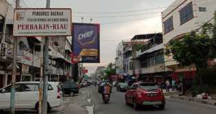 PEKANBARU- Satu unit tiang reklame menampilkan iklan salahsatu produk rokok berdiri di Jalan Seti.