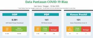 PEKANBARU- Kasus positif Covid- 19 hari ini Senin, 18 Mei 2020 di Provinsi Riau bertambah 2.